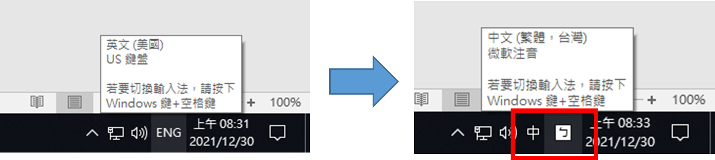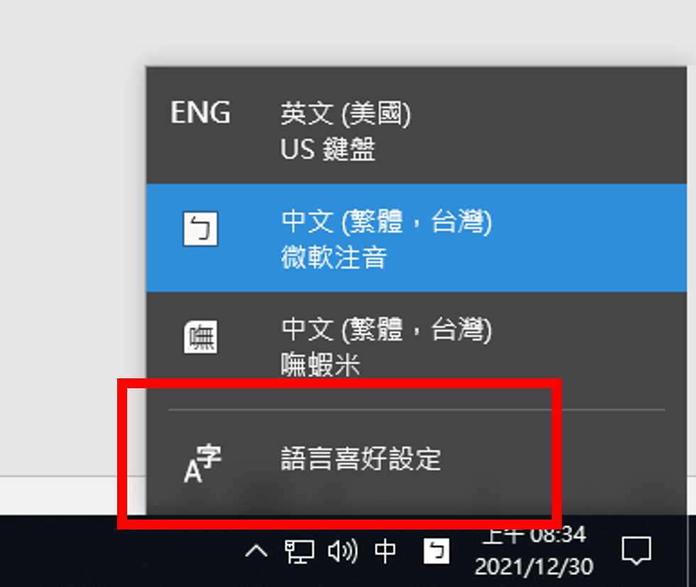 一、工作列右下角先選擇【微軟注音輸入法】→ 點擊【更多鍵盤設定】