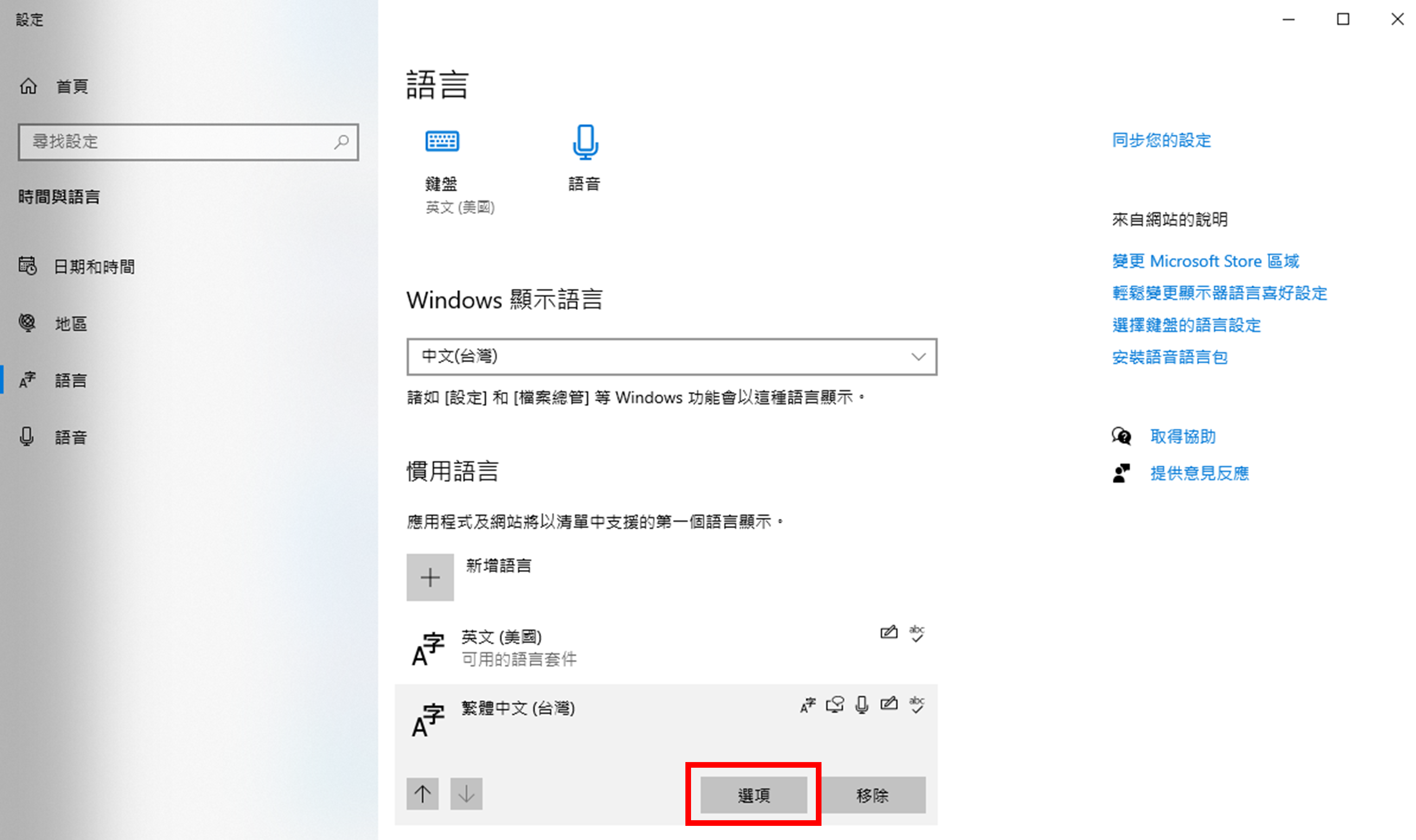 二、點擊【繁體中文(台灣)】→【…】→【…語言選項】
